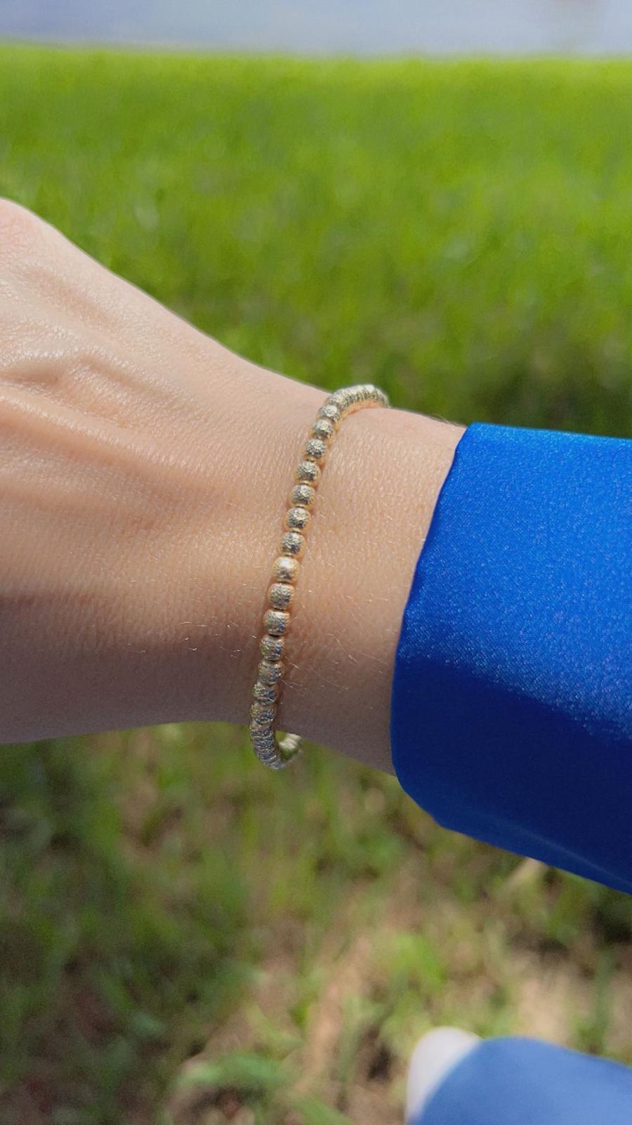 Add a touch of elegance to your outfit with our 14K Diamond-Cut Beaded Bracelet. Made from high-quality 14K gold, this bracelet features intricate diamond-cut beads that catch the light for a dazzling effect. Perfect for any occasion, this bracelet is a timeless addition to any jewelry collection.