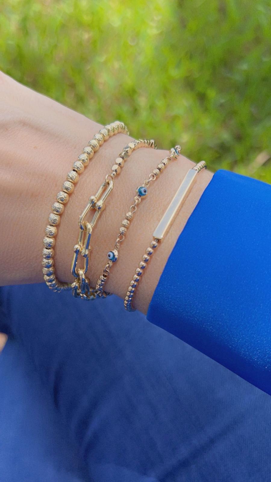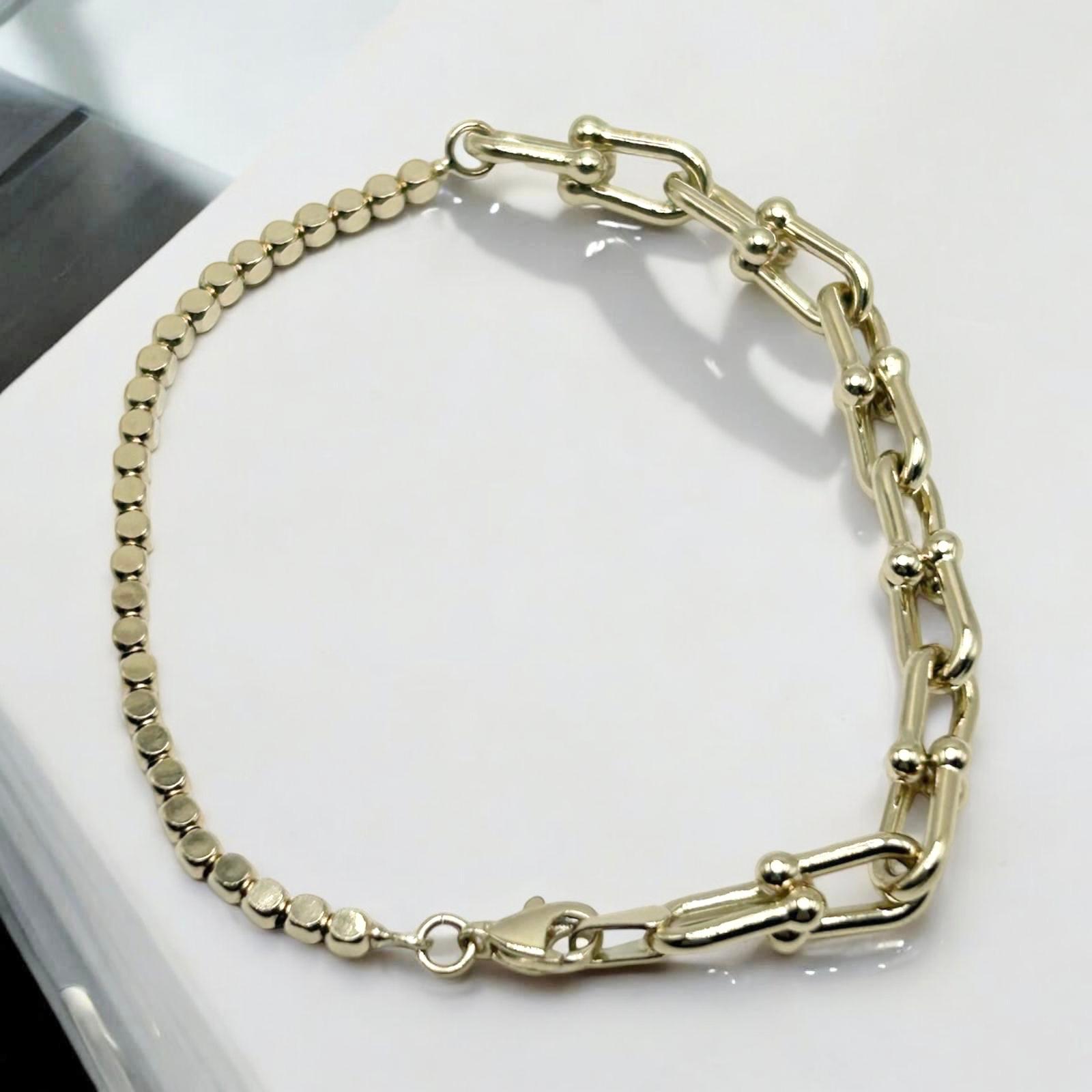 Crafted with precision, this 14K U-Link & Cube Beaded Bracelet adds a touch of elegance to any outfit. Made with high-quality gold, it boasts a unique design that combines both U-link and cube beads for a modern look. Elevate your style and make a statement with this stylish accessory.