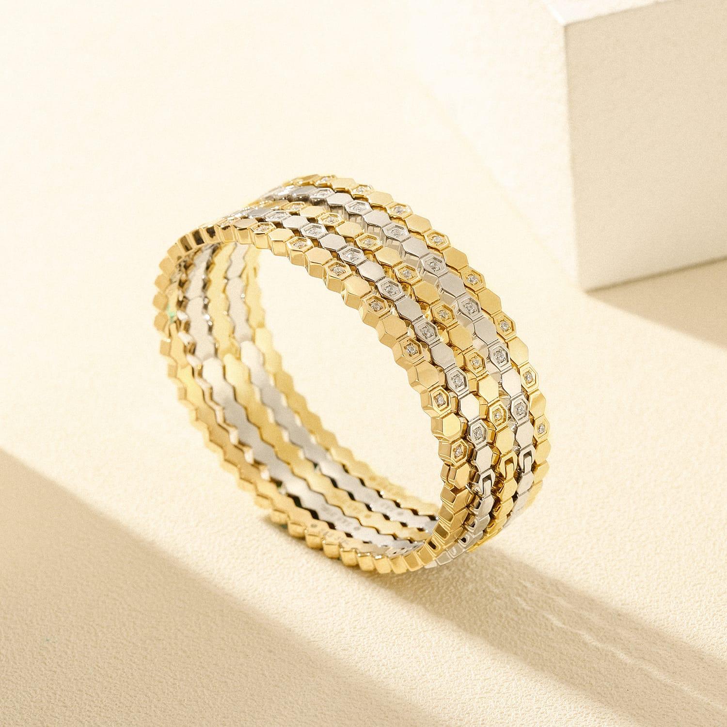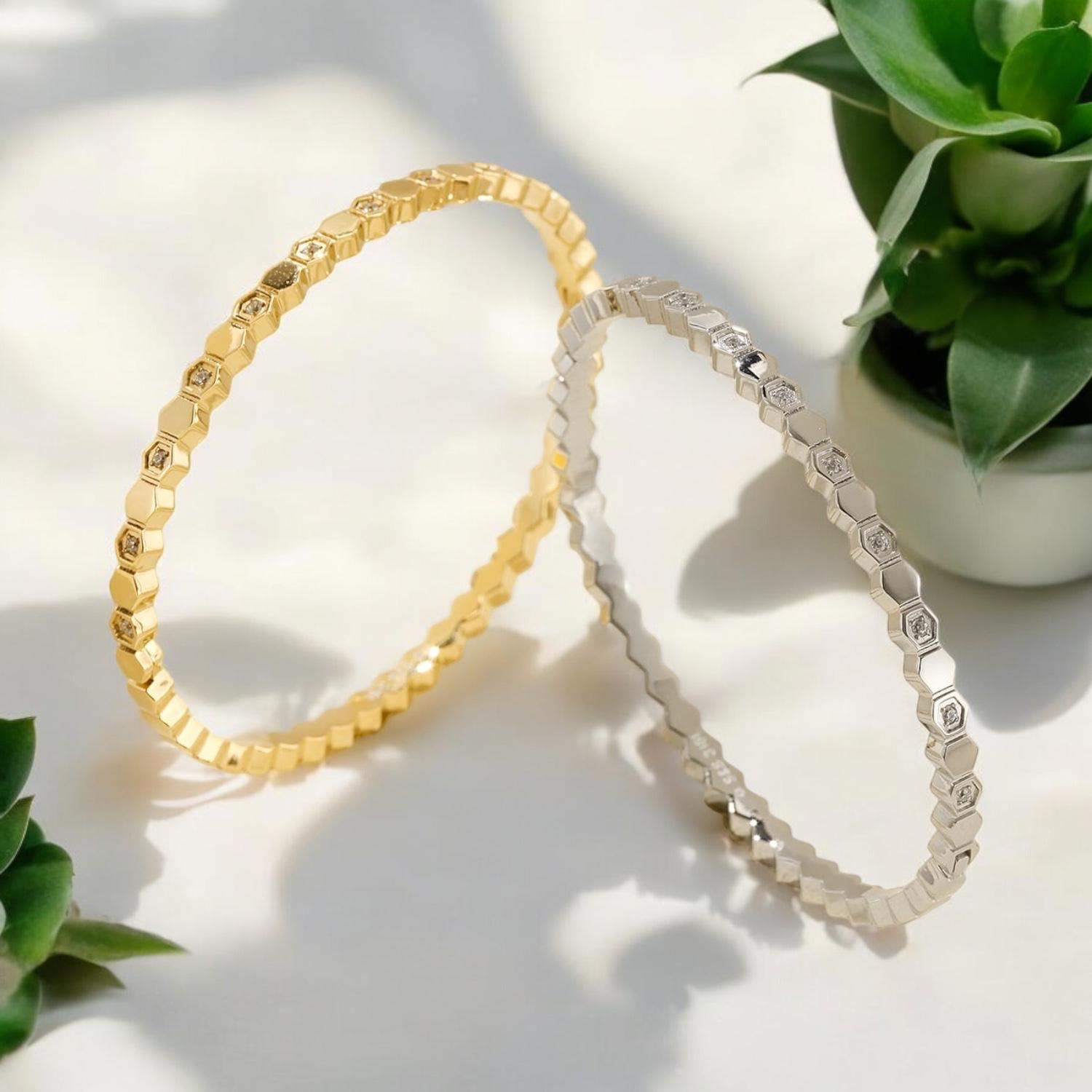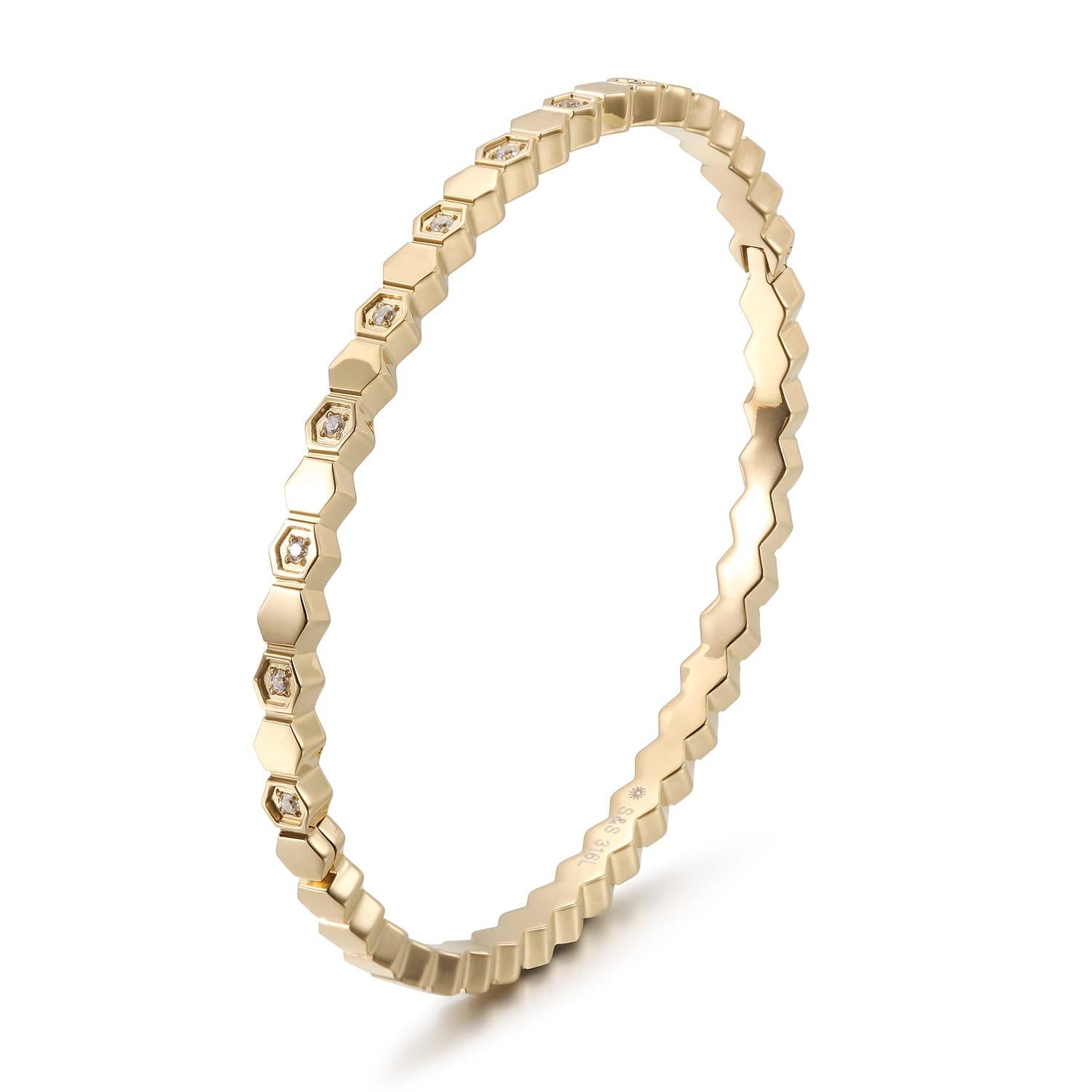 Indulge in luxury with our Hexagon Bangle. Crafted with sparkling cubic zirconia, this sophisticated bangle features a unique hexagon shape that will elevate any outfit. A must-have for the modern fashionista.