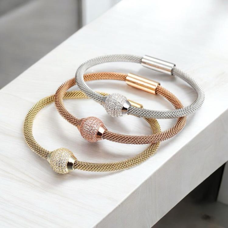 This elegant Pavé Mesh Bracelet boasts a delicate and intricate design. With its pavé setting, this bracelet sparkles in any light, adding a touch of luxury and sophistication to any outfit.